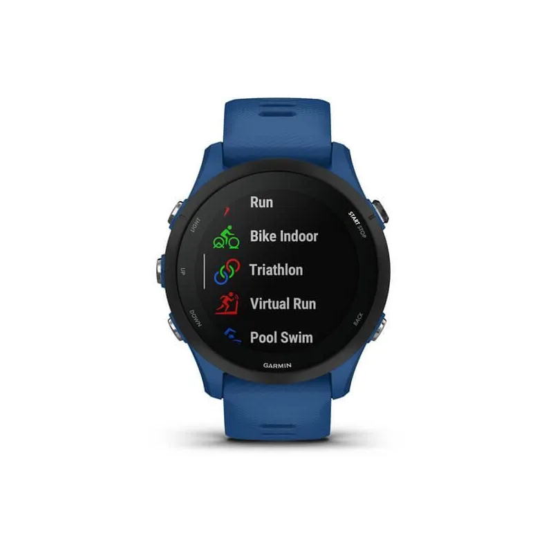 APLICACIONES DEPORTIVAS INCORPORADAS: Accede a más de 30 actividades incorporadas, incluidos los perfiles de triatlón y natación en aguas abiertas, nuevos en la serie de relojes para correr Forerunner 255. Para carreras y entrenamientos combinados, cambia a la siguiente actividad con un solo botón.