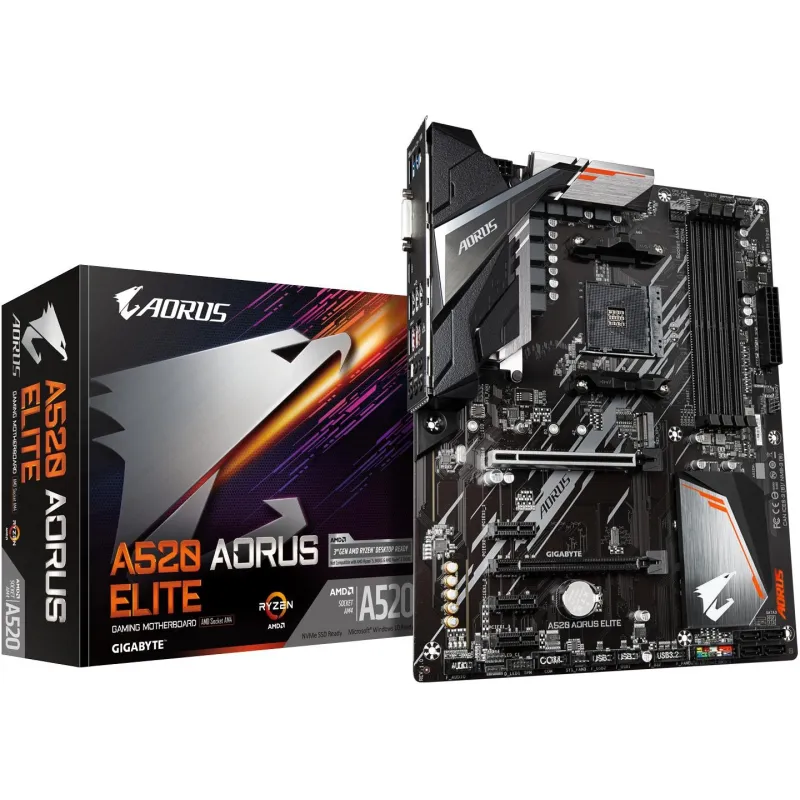 CONECTORES DE ALIMENTACIÓN DE CLAVIJA SÓLIDA: Las placas base A520 AORUS cuentan con conectores de alimentación ATX de 12 V y 8 pines con revestimiento sólido para ofrecer una fuente de alimentación estable durante la sobrecarga de la CPU.