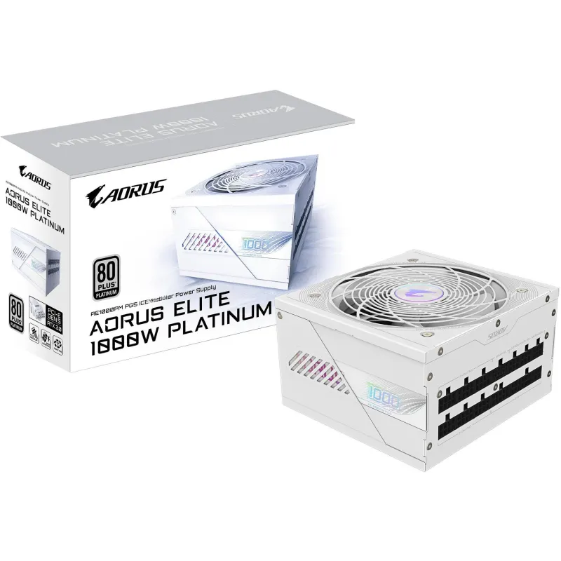 Fuente de Alimentación Gigabyte Aorus Elite de 1000W, formato ATX, certificación 80 Platinum, cableado Full Modular, color Blanca