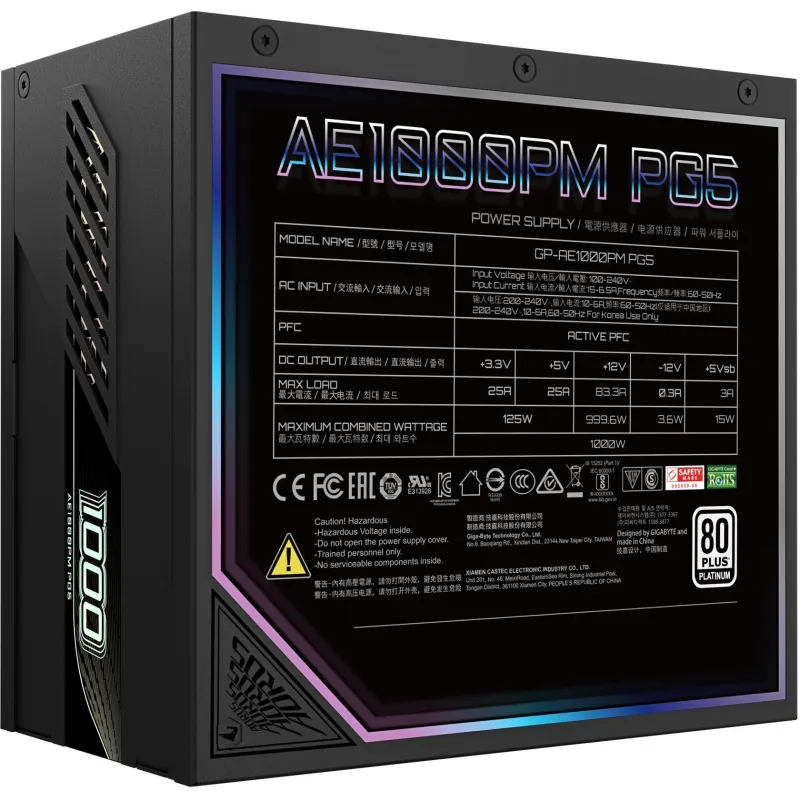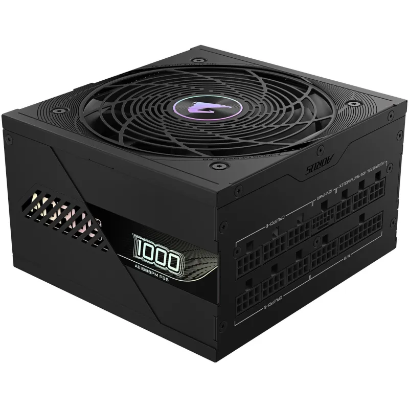 Fuente de Alimentación Gigabyte Aorus Elite de 1000W, formato ATX, certificación 80 Platinum, cableado Full Modular, color Negra
