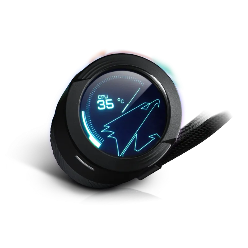 AORUS Silent Fans: A través de pruebas exhaustivas, AORUS ha desarrollado el diseño de aspa de ventilador de 120 mm más sinérgico para el radiador de 360 mm. Proporcionará la disipación de calor más eficiente manteniendo los niveles de ruido más bajos, incluso a las velocidades máximas.