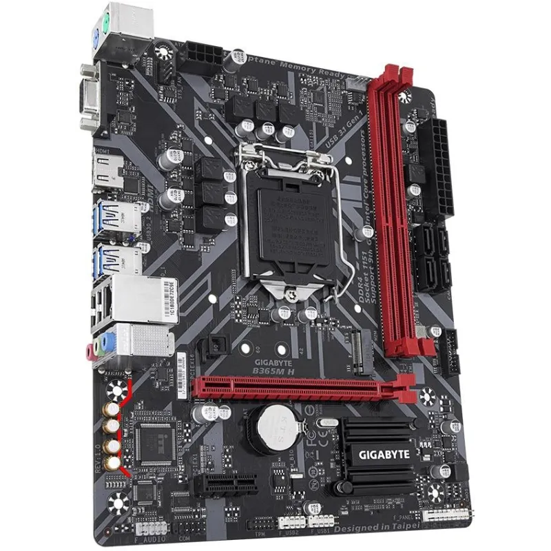 Conectividad avanzada con puertos USB 2.0 y 3.2 Gen 1, junto con 4 conectores SATA III y un robusto soporte de red con Gigabit Ethernet. El chipset Intel B365 y el chip de sonido Realtek ALC887 ofrecen una experiencia de audio de 7.1 canales, mientras que las ranuras de expansión PCI Express y M.2 brindan opciones de crecimiento futuro.