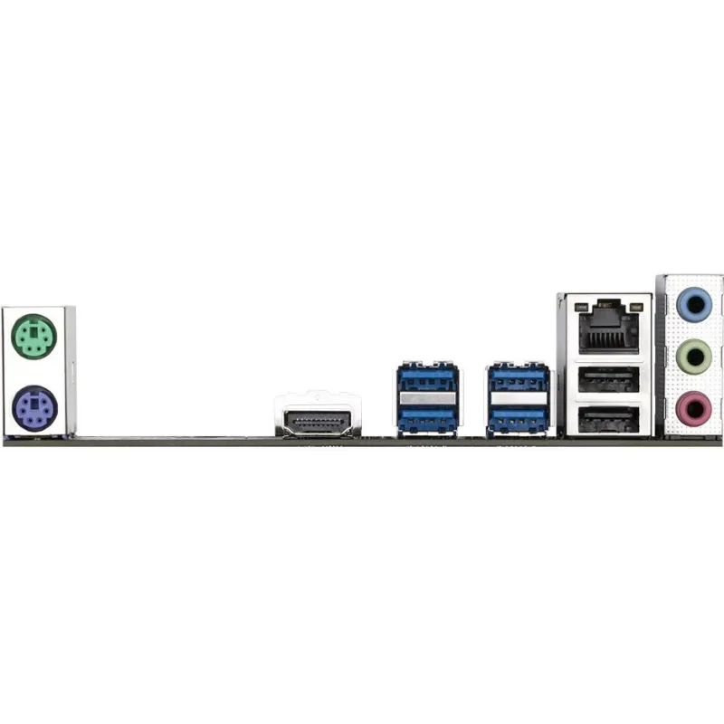 El panel trasero ofrece una variedad de puertos de I/O, incluyendo USB 2.0 y USB 3.2 Gen 1, junto con un puerto Ethernet LAN (RJ-45) y una salida HDMI 2.0, lo que garantiza una excelente conectividad y opciones de expansión.