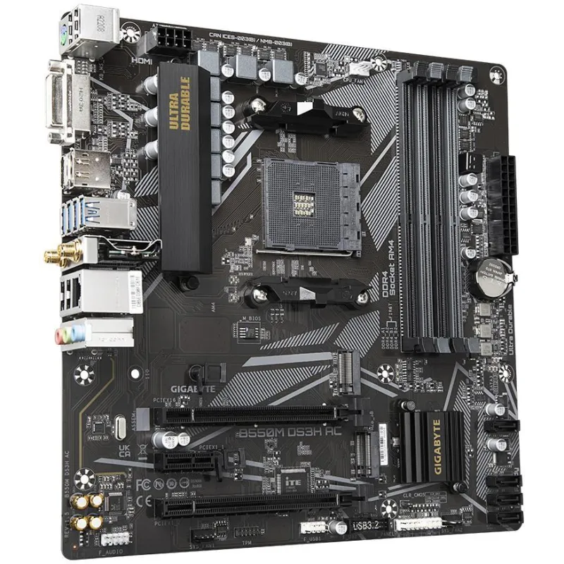 Placa Base Gigabyte B550M DS3H AC formato Micro-ATX, RAM de hasta 128 GB DDR4, conectividad 1 GbE, Bluetooth 4.2 y WiFi 5