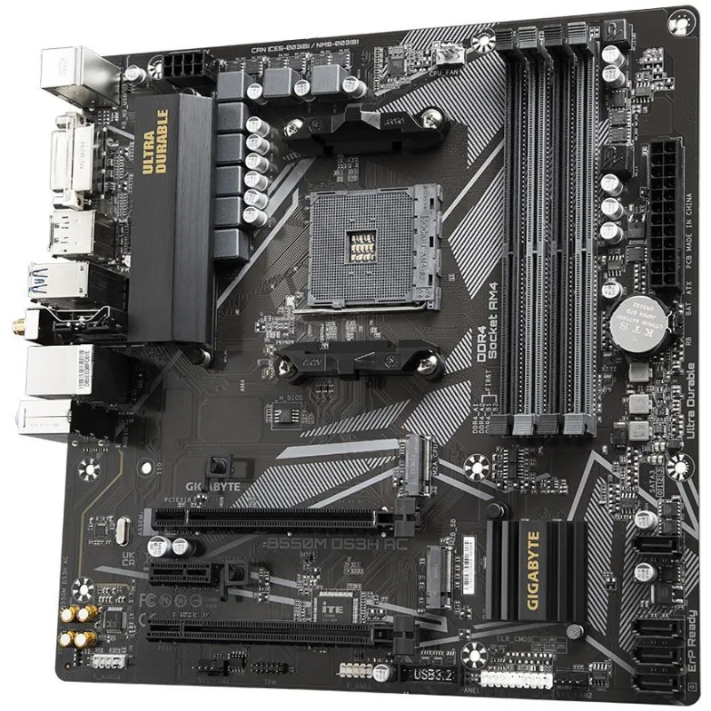 EL PODER QUE TRANSFORMA: En el corazón de cada máquina poderosa reside un alma de silicio, y este es el motor que marca la diferencia. Con un diseño cuidadosamente elaborado, esta placa base Gigabyte B550M DS3H AC redefine lo que significa el rendimiento. Su compatibilidad con los procesadores AMD Ryzen 3000 y 5000 Series, mediante el zócalo AM4, asegura una potencia de procesamiento sin igual. Capaz de manejar hasta 128 GB de memoria interna, se convierte en el aliado indispensable para quienes buscan llevar sus tareas al siguiente nivel. La arquitectura de doble canal y la compatibilidad con ECC y no ECC permiten un flujo de datos estable y seguro, brindando una experiencia de usuario fluida y confiable.