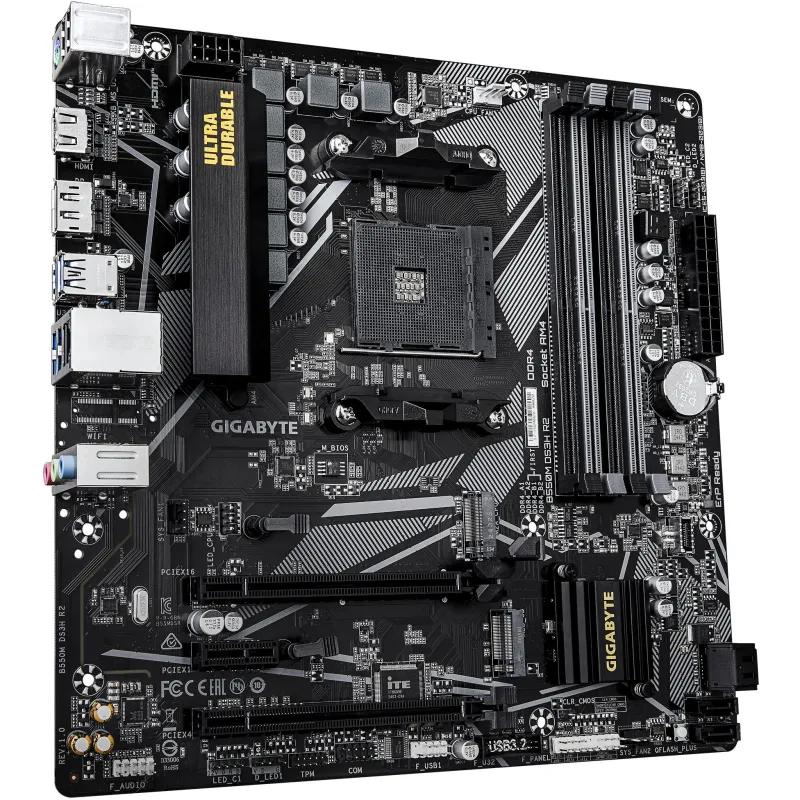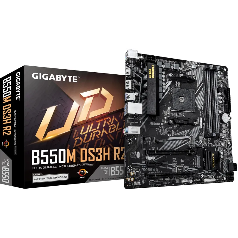 Placa Base Gigabyte B550M DS3H R2 con chipset AMD B550, soporte para memoria DDR4 4733 MHz y procesadores AMD Ryzen serie 3000 a 5000