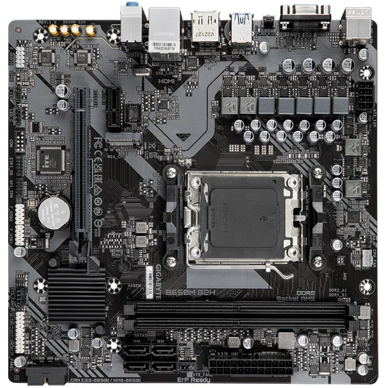 Esta placa base Gigabyte B650M S2H 1.0 está diseñado para ofrecer un rendimiento excepcional y una gran capacidad de expansión. Con soporte para procesadores AMD Ryzen de 5ª, 7ª y 9ª generación en el zócalo AM5, es compatible con una amplia gama de opciones para mejorar la velocidad y el poder de tu sistema. Admite hasta 96 GB de memoria DDR5-SDRAM, permitiendo velocidades de hasta 6200 MHz para una experiencia fluida y eficiente en multitareas y aplicaciones exigentes.