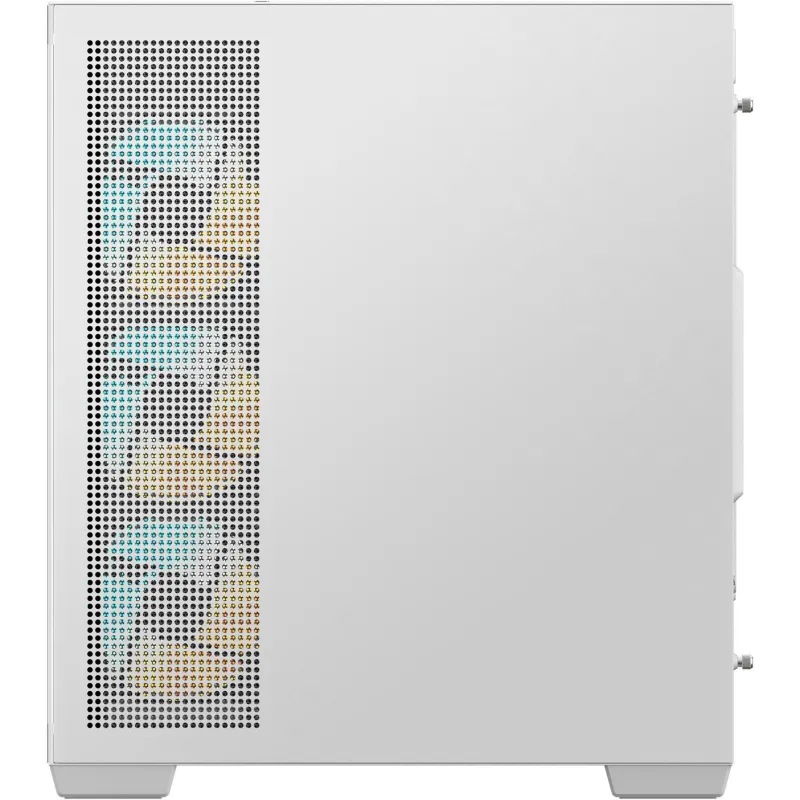 VISTA PANORÁMICA DE 270° CON PANELES DE VIDRIO TEMPLADO: Ambas paneles, frontal y lateral, están hechos de vidrio templado de 4 mm, ofreciendo una vista panorámica de 270° del ensamblaje interno. Esto permite a los usuarios mostrar fácilmente su equipo de PC personalizado. El diseño sin perforaciones de ambos paneles de vidrio reduce el riesgo de daños y mejora el atractivo visual general.