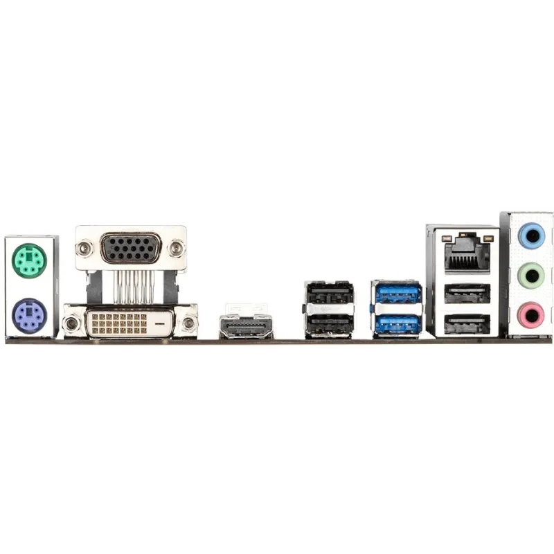 En cuanto a conectividad, esta placa base no se queda atrás. Con conectores USB 2.0 y 3.2 Gen 1, múltiples puertos HDMI, DVI-D y VGA, y Ethernet Gigabit, tienes todas las conexiones que necesitas para un entorno de trabajo o juego completo.