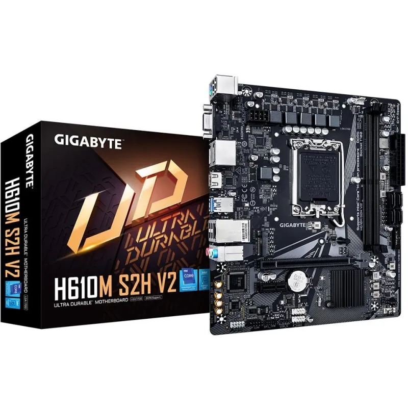 DISEÑO COMPACTO Y FUNCIONALIDAD COMPLETA: Gracias a su formato micro ATX, la Placa Base Gigabyte H610M S2H V2 DDR5 se adapta perfectamente a cajas compactas sin renunciar a características avanzadas. A pesar de su tamaño reducido, ofrece múltiples ranuras PCIe, conectores M.2, SATA III y una amplia gama de puertos USB, tanto frontales como traseros. Su estructura incluye componentes de alta calidad que garantizan durabilidad y rendimiento constante. Además, el soporte para DDR5 5600 MHz y el chipset Intel H610 Express aseguran compatibilidad con tecnologías actuales y futuras. Esta combinación de tamaño y funcionalidad la convierte en una excelente elección para quienes buscan eficiencia sin sacrificar prestaciones.