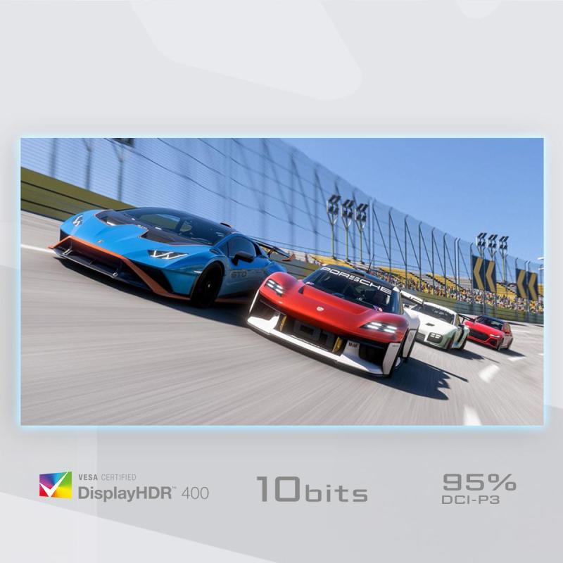 Destaca por su soporte para DisplayHDR 400, que mejora los niveles de brillo y contraste, proporcionando imágenes más realistas y detalladas. Con una cobertura del 130% del espacio sRGB y una gama de colores DCI-P3 del 95%, este monitor es perfecto para quienes buscan precisión en la representación de colores. Su diseño antirreflectante y su amplio ángulo de visión de 178° aseguran una visualización óptima desde cualquier posición.