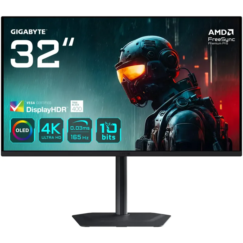 Monitor Gigabyte MO32U con pantalla OLED 165 Hz, resolución 3840 x 2160 píxeles HDR y FreeSync Premium Pro.