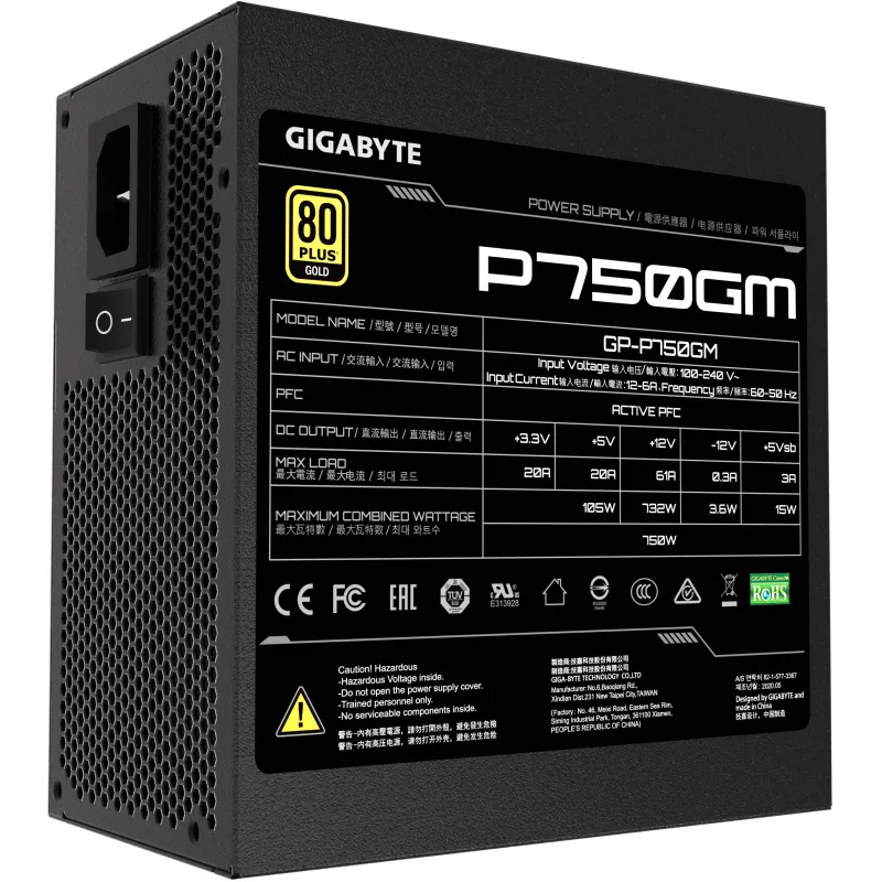 Descubre la potencia y eficiencia de nuestra fuente de alimentación con una potencia total de 750 W y una eficiencia del 90%, diseñada para proporcionar un rendimiento óptimo y fiable. Compatible con una amplia gama de voltajes de entrada AC de 100 - 240 V y frecuencias de 50 - 60 Hz, esta unidad garantiza un suministro de energía estable y eficiente para tu equipo.