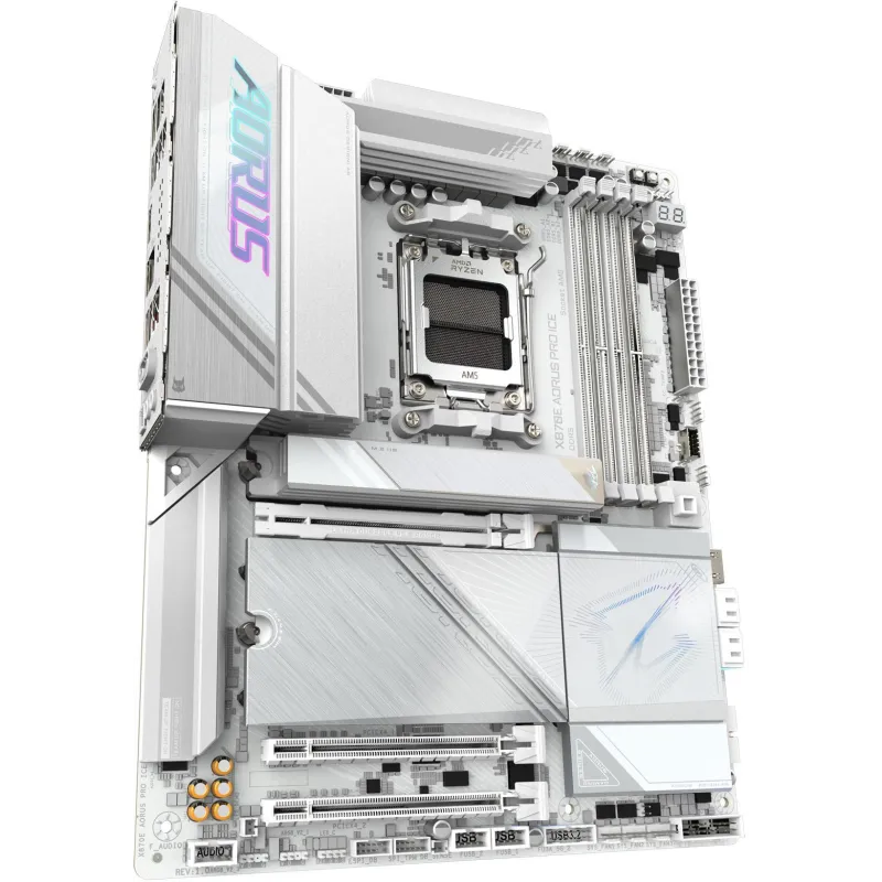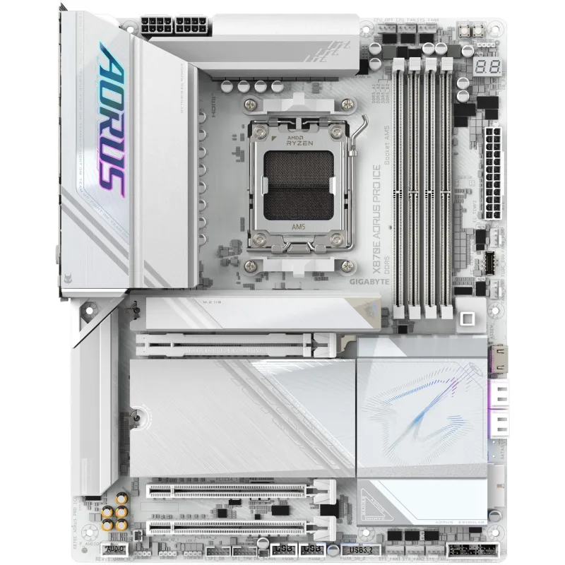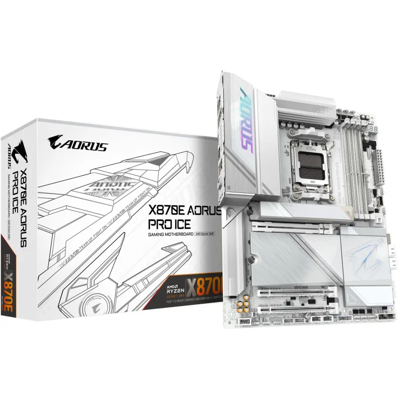 Placa Base Gigabyte X870E AORUS PRO ICE soporta CPUs AMD Compatible con Ryzen 7000/8000/9000 con PCIe 5.0, Wi-Fi 7 y Bluetooth 5.3 memoria DDR5 de 8200 MHz