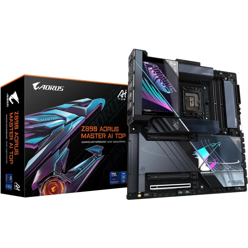 Placa Base Gigabyte Z890 AORUS MASTER AI TOP compatible con Intel Core Ultra DDR5 Wi-Fi 7 PCIe 5.0 RAID y hasta 256 GB de memoria RAM.