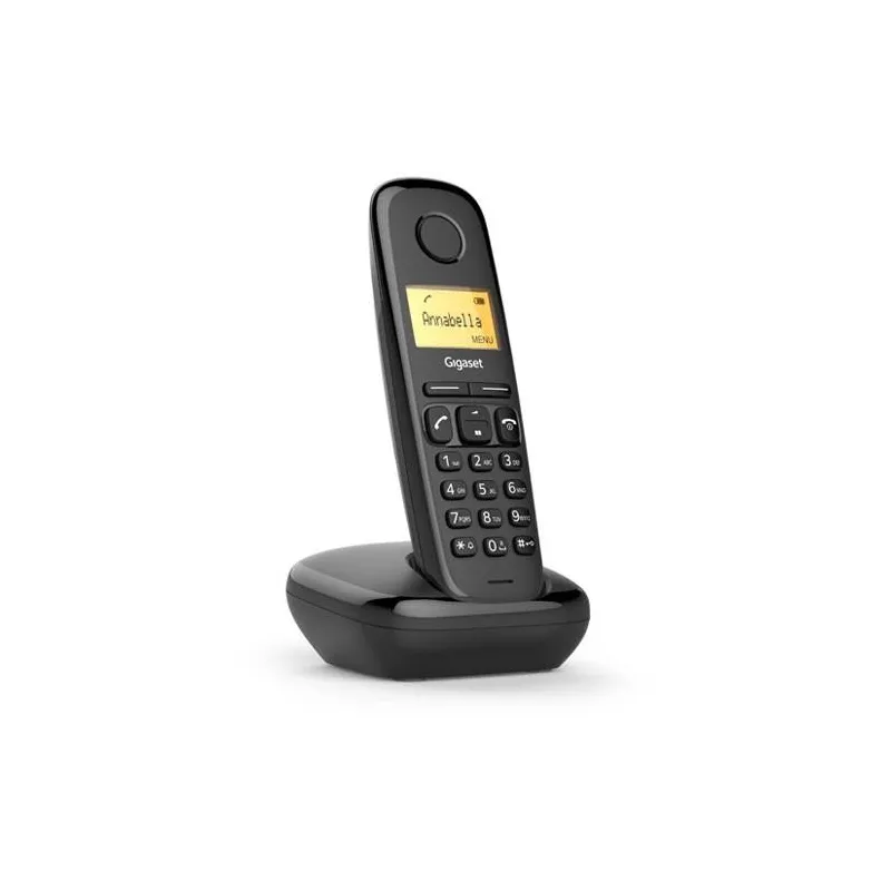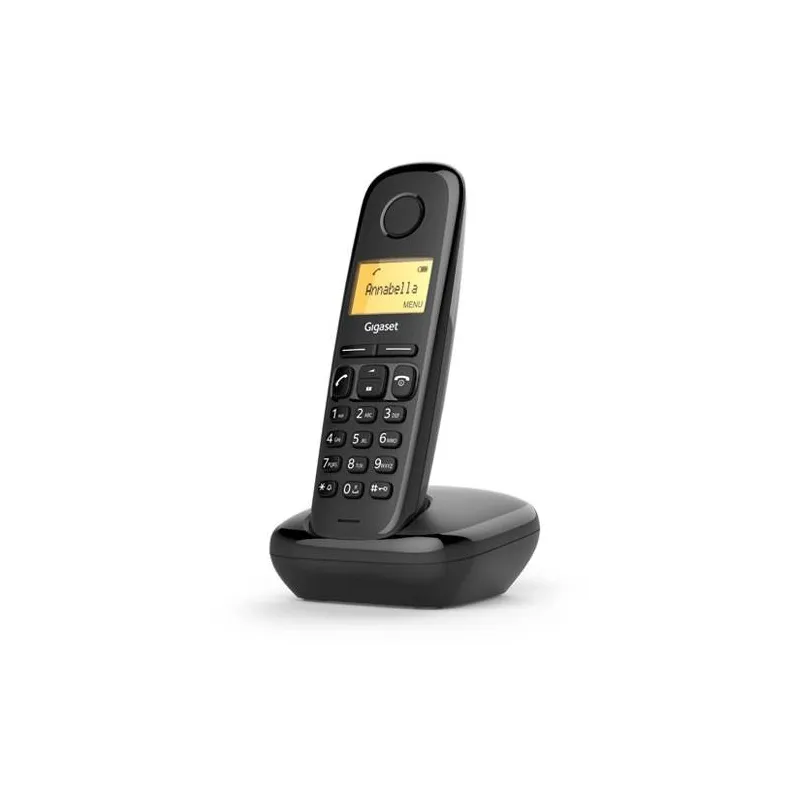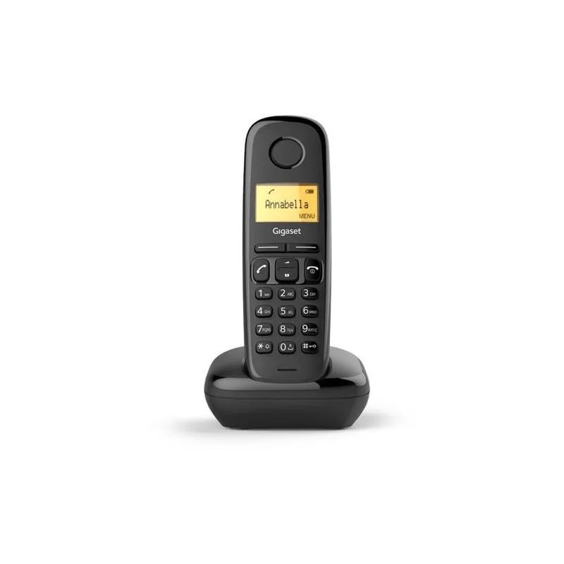 EL TELÉFONO QUE SATISFACE TODAS SUS NECESIDADES DE COMUNICACIÓN - SENCILLO Y ASEQUIBLE: Descubra el Gigaset A170. Es un teléfono inalámbrico sencillo y fiable con calidad "Made in Germany". Presenta teclás fáciles de usar con puntos sensibles a la presión para marcar sin esfuerzo. Su gran pantalla gráfica de matriz de puntos iluminada facilita la lectura. Y gracias al registro preconfigurado en la estación base, la instalación no requiere más que un rápido plug & play. Y hay algo más de lo que no tendrá que preocuparse: el Modo Eco Plus sin radiaciónlo convierte en la opción ecológica de la telefonía.