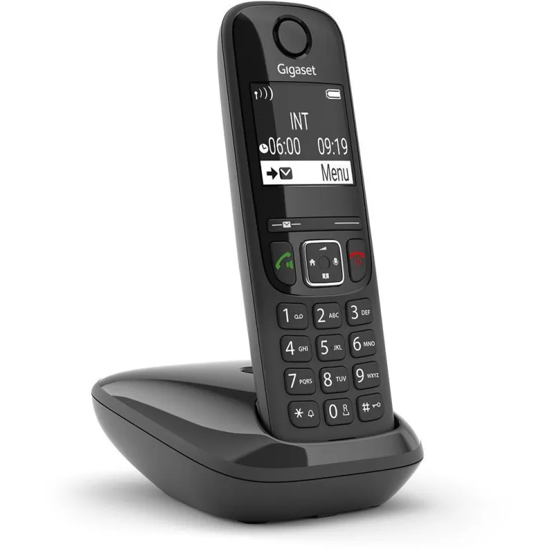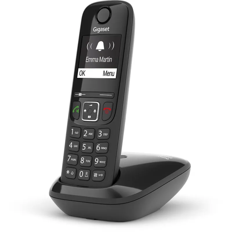 MANTÉNGASE EN CONTACTO CON UNA GUÍA TELEFÓNICA INCORPORADA Y UN LARGO TIEMPO DE CONVERSACIÓN: El Gigaset AS690 facilita la comunicación: con 14 horas de tiempo en conversación, puede estar seguro de que siempre podrá hablar con sus contactos en cualquier momento. La guía telefónica integrada del dispositivo puede contener hasta 100 nombres y números. Además, se enumeran automáticamente las últimas 25 llamadas y la hora en que sonaron. Con un tiempo de espera de 180 horas, las personas que llaman siempre podrán comunicarse con usted.