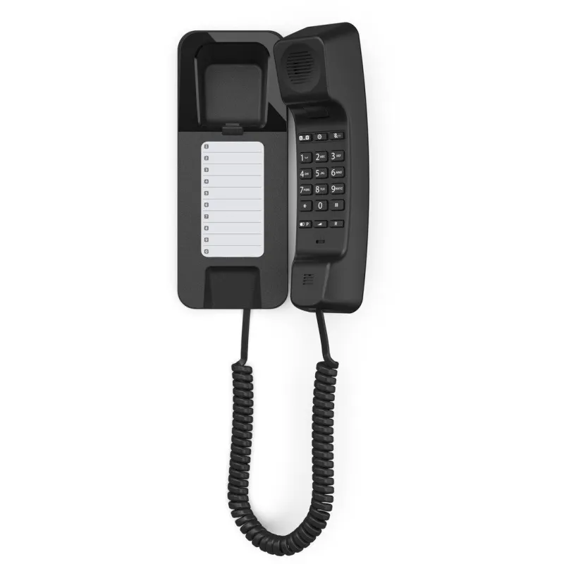 COMPACTO, MONTABLE EN PARED Y CON CABLE: El Gigaset DESK 200 combina las funciones de telefonía más importantes con un diseño particularmente delgado y compacto. Por lo tanto, es adecuado como un teléfono de escritorio que ahorra espacio o, alternativamente, se puede montar rápida y fácilmente en la pared. El Gigaset DESK 200 se puede conectar a la red fija o utilizar como parte de una red telefónica interna en el hogar o en la oficina.