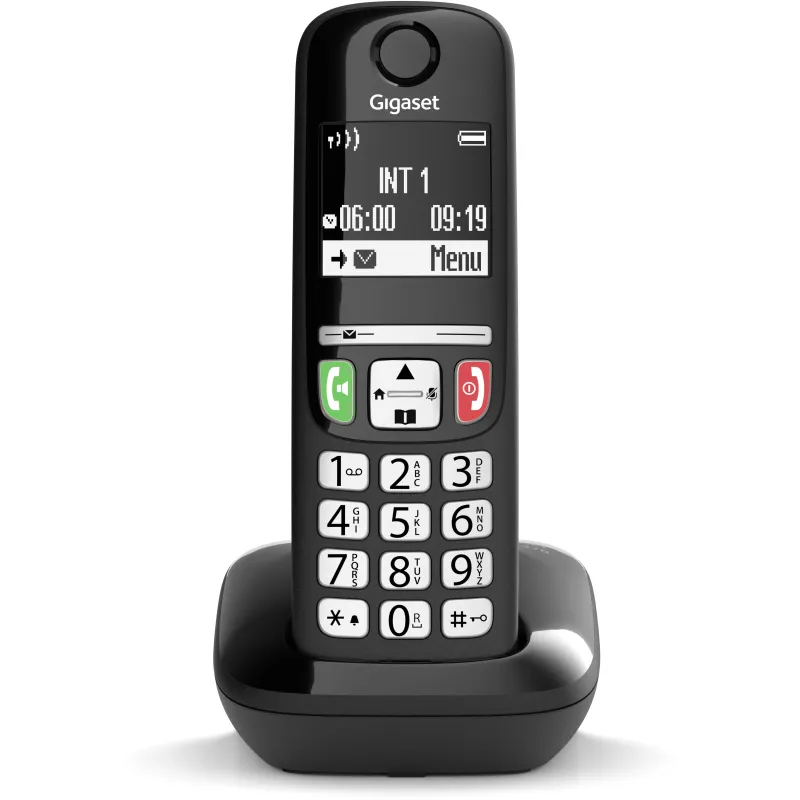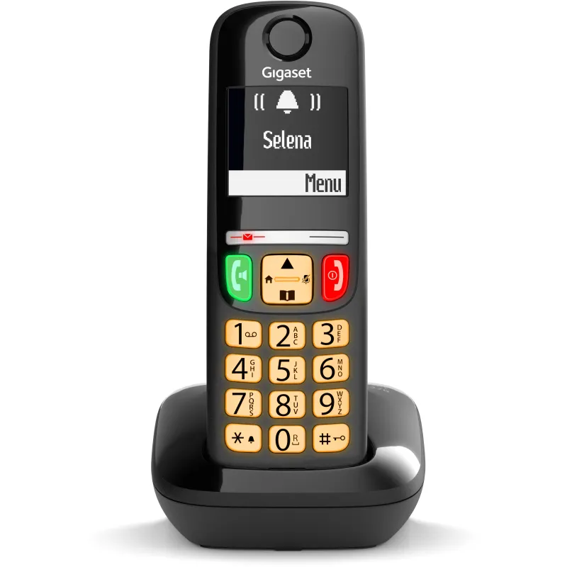 DISEÑO FUNCIONAL Y ACCESIBLE PARA TODOS: El Teléfono inalámbrico Gigaset E270 ha sido diseñado pensando en la comodidad del usuario. Su estructura incluye botones grandes y retroiluminados, ideales para personas con dificultades visuales o para su uso en ambientes con poca luz. El teléfono DECT también es compatible con audífonos, lo que garantiza una experiencia auditiva clara para todos los usuarios. Su pantalla LCD retroiluminada mejora la interacción con el dispositivo, permitiendo acceder rápidamente a funciones como identificador de llamadas, llamada en conferencia y bloqueo de llamadas. Además, su diseño compacto y elegante en color negro se adapta a cualquier entorno, ya sea doméstico o profesional. El terminal inalámbrico Gigaset ofrece una solución completa, práctica y de fácil instalación.