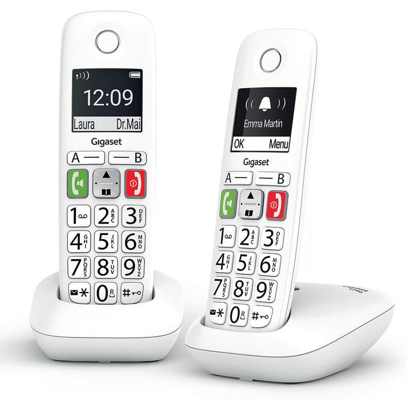 COMODIDAD Y SEGURIDAD CON SOLO TOCAR UN BOTÓN: Si el simple hecho de marcar un número de teléfono es sencillo, el resto de la experiencia telefónica será mucho más agradable. Esta es exactamente la razón por la cual el teclado ergonómico del teléfono de teclas grandes Gigaset E290 ahora hace que usar el teléfono sea lo más cómodo posible. Las teclas grandes están iluminadas y claramente etiquetadas para garantizar una buena legibilidad. Puede guardar contactos particularmente importantes, como personas para llamar en caso de emergencia, en una de las dos teclas de repertorio (A y B). La función de llamada directa es útil si solo desea poder llamar a un número desde el teléfono. En situaciones difíciles, puede presionar cualquier botón y se marcará el número que haya almacenado.