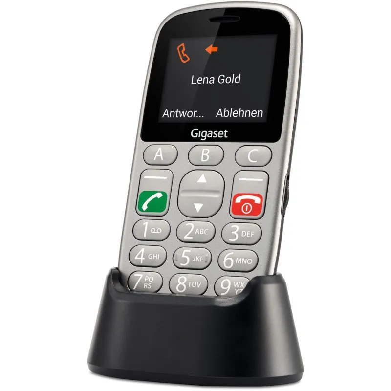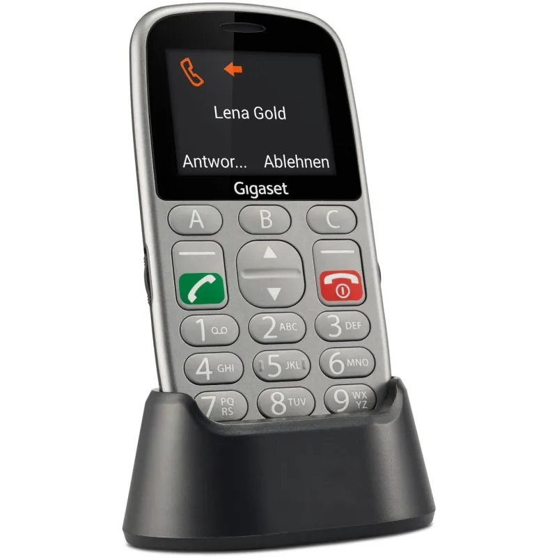 TECLAS GRANDES, PANTALLA CLARA Y SONIDO PERFECTO: Funcionalidad simplificada que ofrece solo las características que son realmente necesarias, como teclas grandes retroiluminados, una pantalla claramente legible y una interfaz de usuario fácil de usar para el uso diario. Este teléfono para personas mayores también es compatible con audífonos y se puede ajustar para adaptarse a la capacidad auditiva del usuario gracias al timbre ajustable y al volumen de llamadas, que se pueden configurar muy alto. El Gigaset GL390 hace que la comunicación móvil sea fácil, incluso para personas con problemas auditivos y discapacidades visuales.
