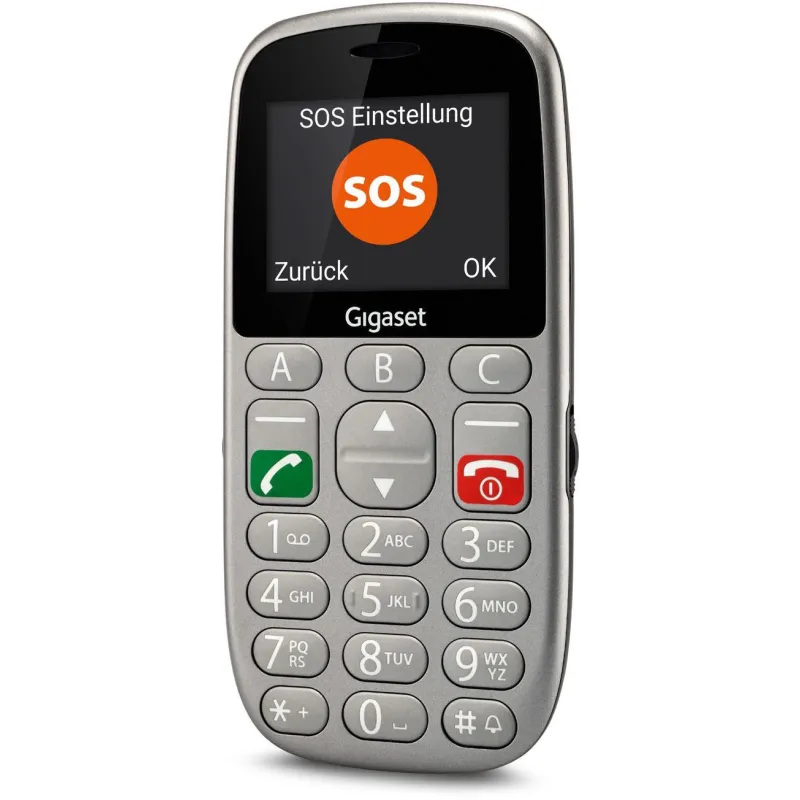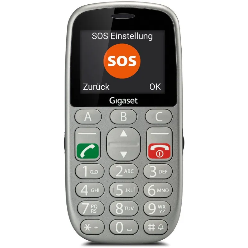 AYUDA CON SOLO PRESIONAR UN BOTÓN: Sus contactos más importantes están disponibles con solo presionar un botón, para su tranquilidad, especialmente cuando está en movimiento. Simplemente guarde los números de familiares, vecinos o médicos en las tres teclas de marcación rápida (A, B, C). Se puede encontrar un botón de emergencia SOS en la parte posterior del teléfono. Esto le permite vincular hasta cinco contactos o números de teléfono, que se marcan uno tras otro en caso de emergencia, durante el tiempo que sea necesario hasta que alguien responda quién puede ayudar o enviar ayuda. Incluso puede enviar mensajes de texto automatizados con un mensaje de emergencia personalizado con solo tocar un botón. El tono de alarma adicional en el dispositivo le permite atraer la atención de las personas cercanas también.