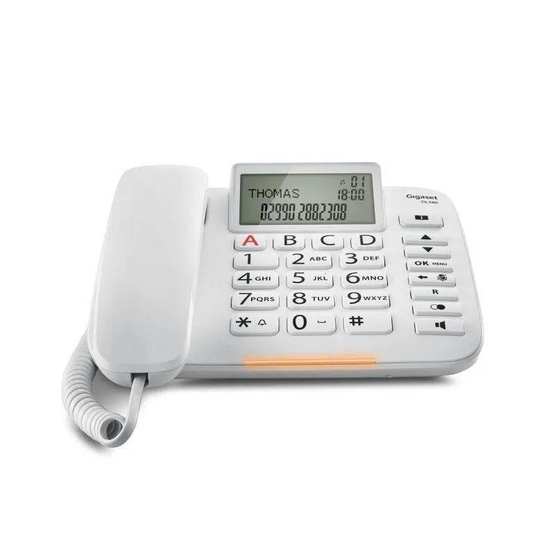 FÁCIL DE USAR: TECLAS ERGONÓMICAS PARA REALIZAR CÓMODAS LLAMADAS DE TELÉFONO: Teclas grandes, ergonómicas y táctiles con puntos de presión sensible: esto significa que marcar en el Gigaset DL380 es muy fácil. Además, con cuatro teclas programables (A-D) puede almacenar sus contactos más importantes a los que puede llamar directamente. Como resultado, puede contactar con sus seres queridos incluso más rápido con solo hacer clic en un botón. La tecla “A” está marcada en rojo para guardar un número particularmente importante y, por lo tanto, poder encontrar la tecla inmediatamente en caso de una emergencia.