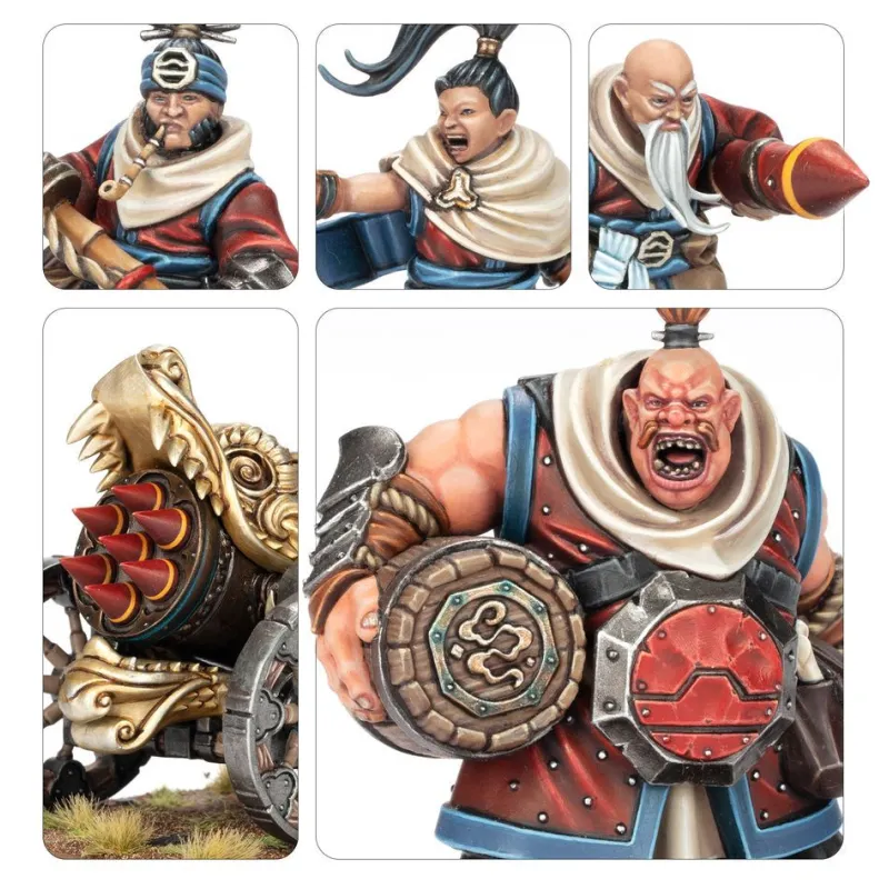 Más allá de su potencia, Grand Cannon & Fire Rain Rocket Battery destaca por la calidad de sus miniaturas. Cada una de las 10 miniaturas de plástico está esculpida con un nivel de detalle que encantará tanto a coleccionistas como a jugadores de Warhammer: The Old World. Su integración en los ejércitos de Grand Cathay no solo fortalece tu fuerza militar, sino que también enriquece visualmente tu colección. Este set es una elección ideal para quienes buscan una experiencia completa de montaje, personalización y juego.