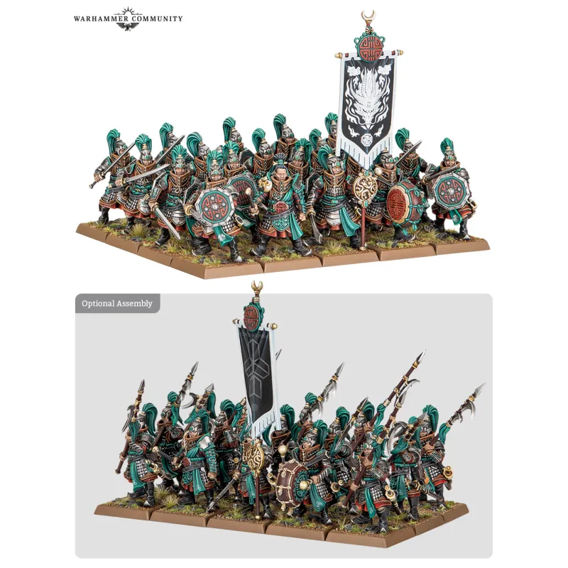 Los Grand Cathay Guerreros de Jade no solo destacan por su funcionalidad táctica, sino también por la riqueza de sus detalles. Desde sus alabardas opcionales hasta la hoja de transferencia Grand Cathay, cada componente ha sido cuidadosamente diseñado para ofrecer una experiencia de montaje y juego completa. En el universo de Warhammer: The Old World, donde la estética y la narrativa son fundamentales, estos elementos permiten a los jugadores conectar más profundamente con su ejército de Grand Cathay y con el mundo que habitan.