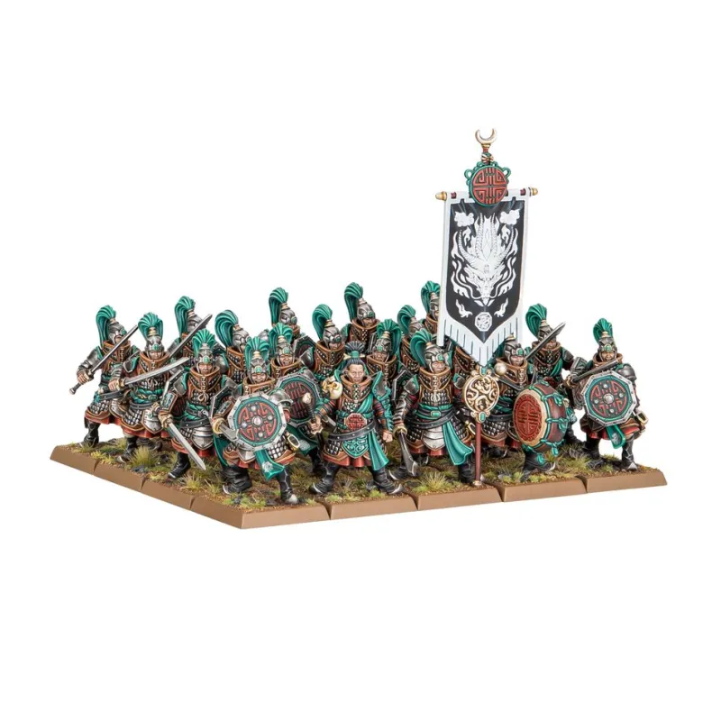 Los Grand Cathay Jade Warriors están diseñados para ser el pilar central de cualquier formación militar de Grand Cathay. Su armadura pesada y su disciplina táctica los convierten en una opción fiable tanto en defensa como en ataque. En el contexto de Warhammer: The Old World, donde la resistencia y la cohesión son clave, esta unidad destaca por su capacidad de mantener la línea bajo presión. Su presencia en el campo asegura una base sólida sobre la cual construir estrategias más complejas.