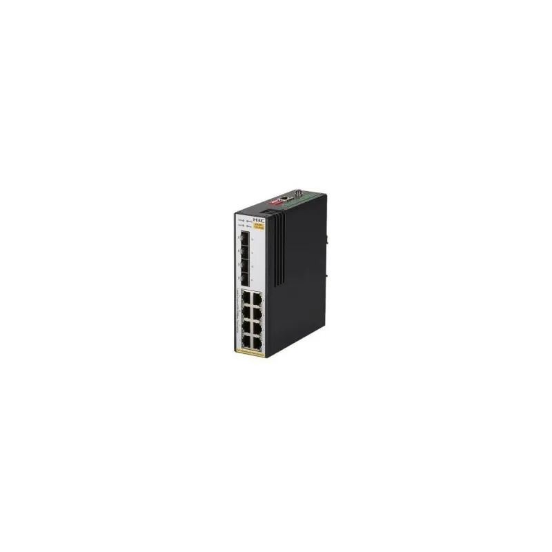 Switch H3C IE4300-12P-PWR con 8 puertos Ethernet, switch capa 2 industrial, PoE, color negro, y soporte para redes
