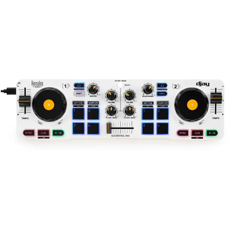 El mezclador DJ Hercules DJCONTROL MIX 4780921 es la herramienta perfecta para quienes buscan rendimiento y portabilidad en un solo dispositivo. Con un diseño compacto y atractivo en colores negro, blanco y amarillo, este equipo destaca por su facilidad de uso y su funcionalidad. Gracias a su palanca crossfader, permite una transición fluida entre canales, ideal para sesiones dinámicas. Aunque no incluye pantalla incorporada ni unidad óptica integrada, su enfoque práctico lo convierte en una excelente opción para DJs en movimiento. Su peso de 500 g y dimensiones reducidas lo hacen muy fácil de transportar, sin comprometer la calidad o el control durante las mezclas. Además, es compatible con los sistemas djay para iOS y Android, lo que amplía sus posibilidades de uso.