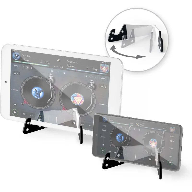 SOPORTE PARA SMARTPHONE INCLUIDO: Funciona con smartphones y tabletas, con o sin funda. Plegable y antideslizante.