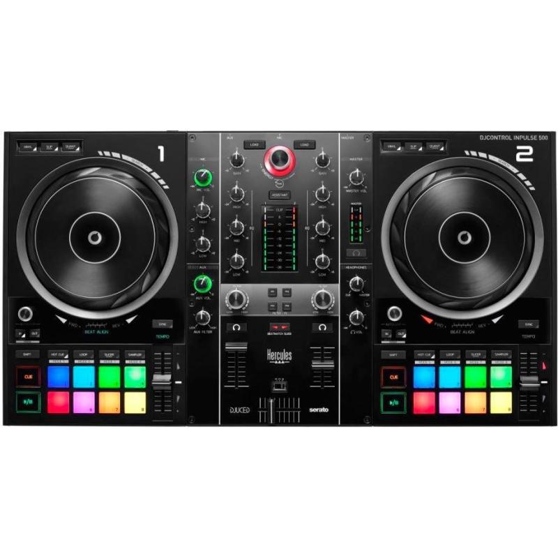 HERCULES DJCONTROL INPULSE 500 ES EL NUEVO CONTROLADOR DJ QUE TE PERMITE ALCANZAR TUS AMBICIONES: Creado para Serato DJ Lite y DJUCED para ayudarte a comenzar a pinchar, perfeccionar tus habilidades y actuar frente a audiencias, DJControl Inpulse 500 tiene un diseño profesional con una placa de respaldo de metal resistente y un montón de características geniales: cuatro pies antideslizantes extensibles/retráctiles para elevar tu mezcla, un mezclador de hardware para las entradas de audio, un área dedicada de Filtro/FX con efectos impresionantes, dos grandes ruedas de jog con detección táctil para hacer scratching, 16 pads de goma RGB retroiluminados, guías de luz útiles para mezclar con total confianza... y mucho más.