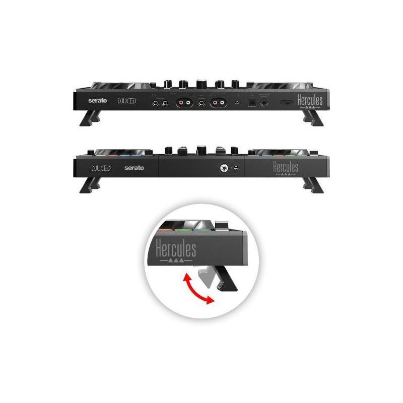 PIES RETRÁCTILES SÓLIDOS: DJControl Inpulse 500 tiene una altura de 3.1” / 8 cm con los pies extendidos. Eleva tu mezcla: pasa cables por debajo y protege el controlador de bebidas derramadas. La base está retroiluminada cuando los pies están extendidos (es decir, desplegados).