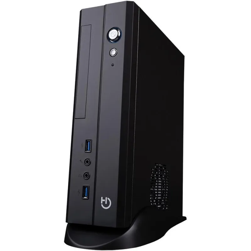 Este PC de Small Form Factor (SFF) presenta un diseño elegante en color negro, fabricado con materiales de alta calidad como ABS y SECC. Es adecuado tanto para el hogar como para la oficina, y soporta tarjetas madre de formato ITX. Incluye botones de encendido/apagado y de restauración, y cuenta con certificaciones CE y RoHS.