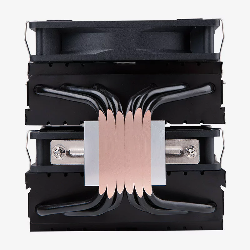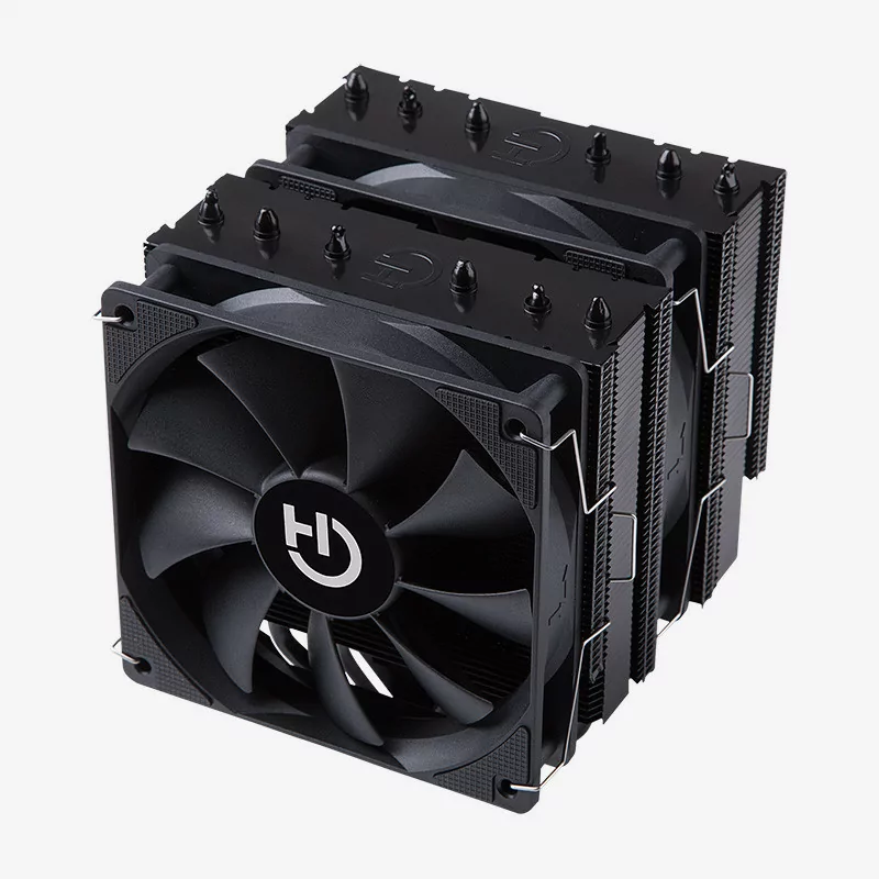 El conjunto de aletas de matriz densa en una disposición de disipador de calor de doble torre ofrece una mayor eficiencia para los sistemas de alto rendimiento.