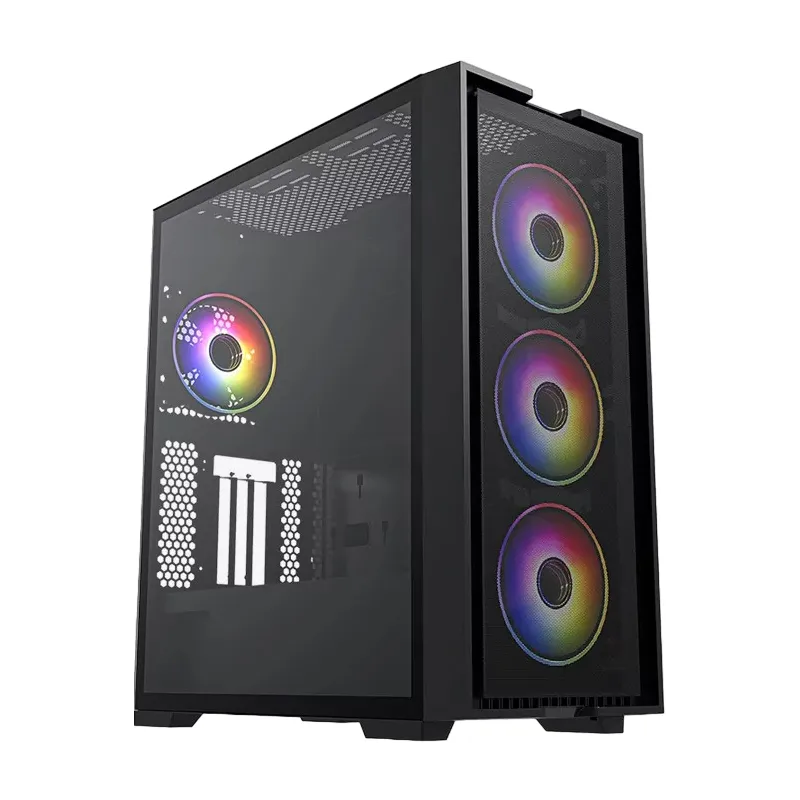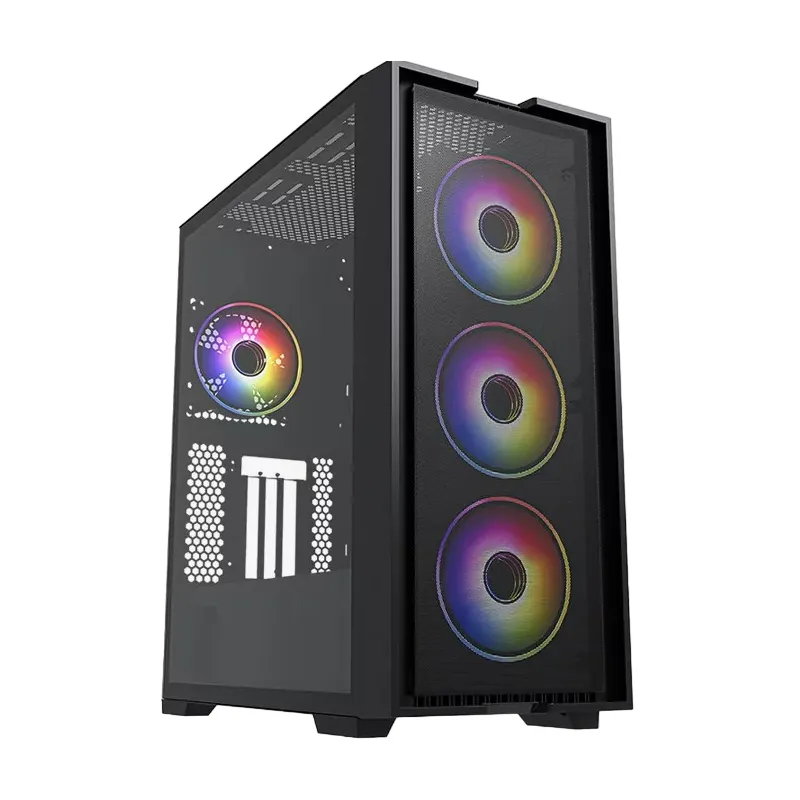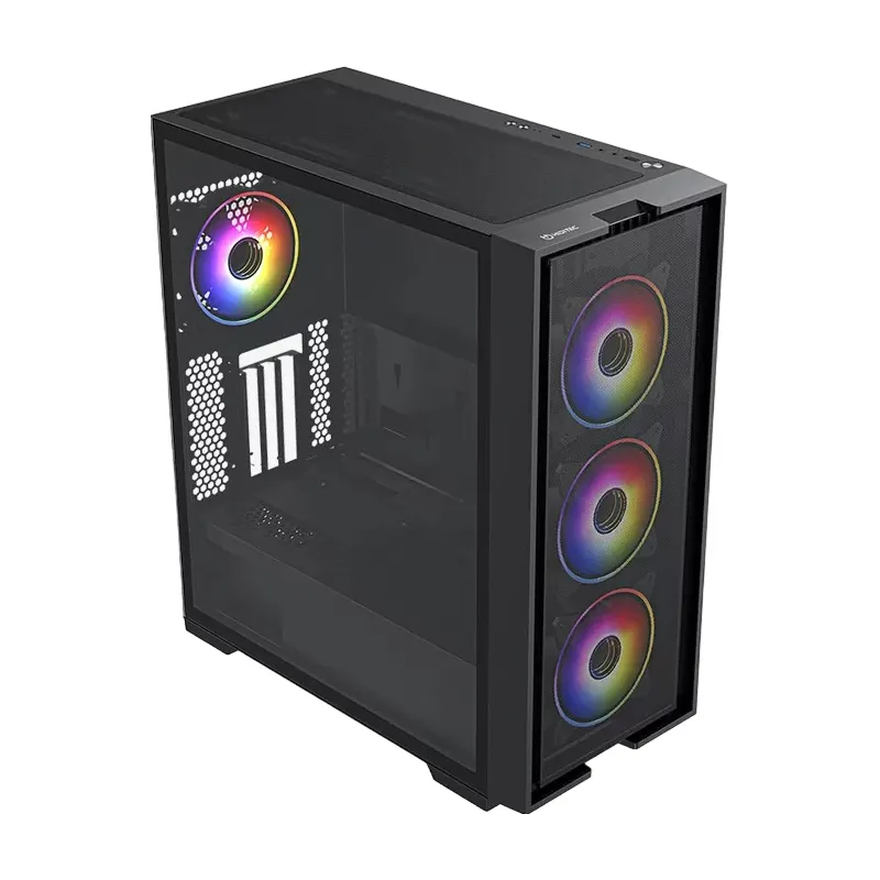 El frontal microperforado y los laterales de cristal templado no solo proporcionan una estética sofisticada, sino que también garantizan una ventilación excepcional, junto con los ventiladores LED ARGB que iluminan tu setup mientras mantienen tus componentes a la temperatura ideal.
