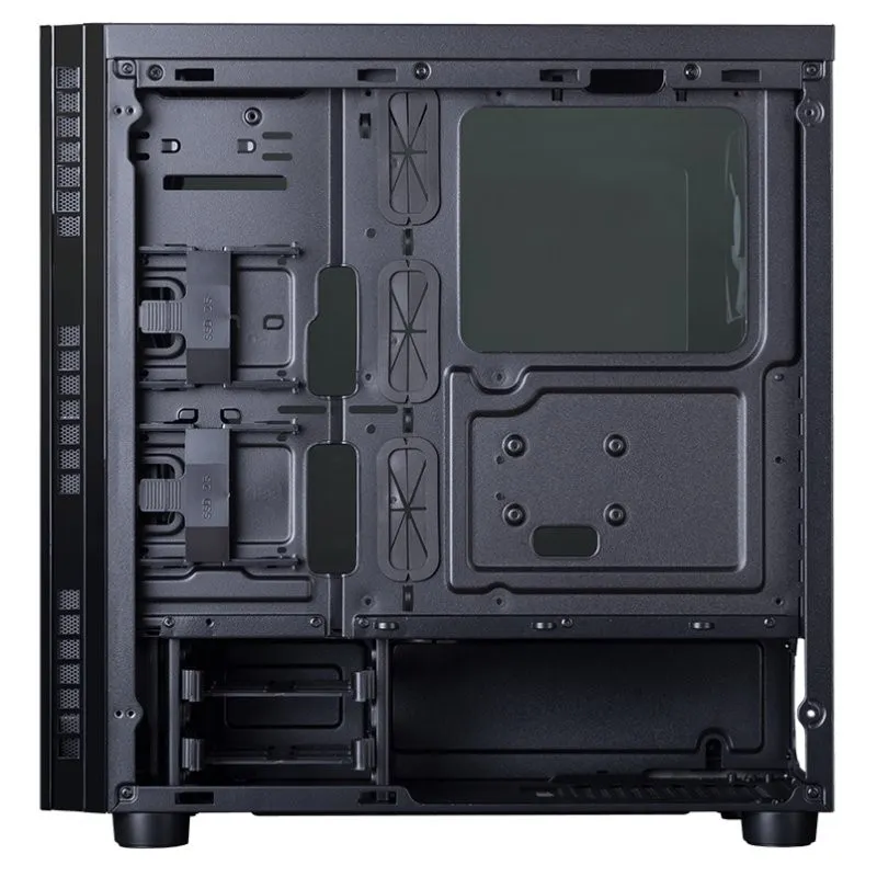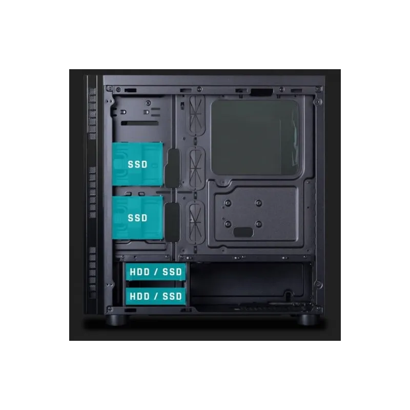 PANEL DE CRISTAL TEMPLADO: El panel lateral del chasis está fabricado en cristal templado de 4mm , además , tanto el frontal como el resto del chasis está fabricado en acero laminado de 8mm para ofrecer mayor durabilidad.