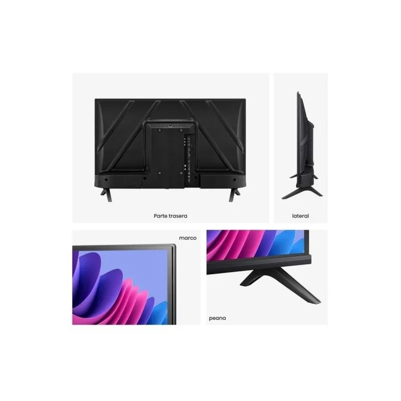 Diseñado en un elegante color negro, el televisor es compatible con el montaje VESA de 100 x 200 mm, lo que permite una instalación flexible en tu hogar. Su carcasa de plástico resistente y un soporte en color negro le dan un toque moderno y sofisticado.