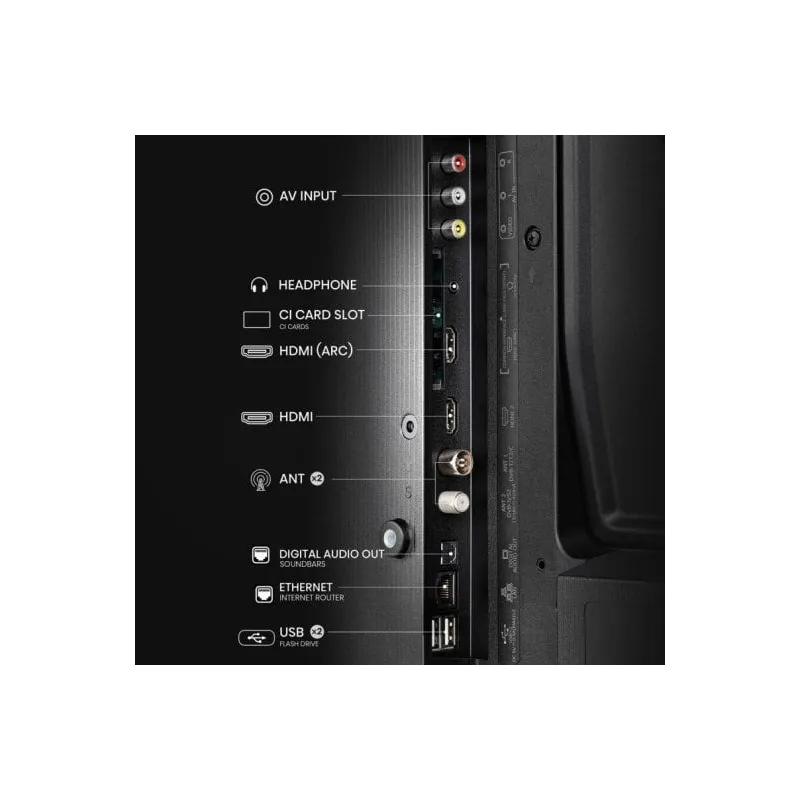 Este televisor cuenta con un sintonizador tanto analógico como digital y es compatible con múltiples formatos de señal digital, incluyendo DVB-C, DVB-S, DVB-S2, DVB-T y DVB-T2, ofreciendo una amplia gama de opciones de entretenimiento. Como Smart TV, te permite acceder a tus aplicaciones y contenido favorito en línea con facilidad, gracias a su compatibilidad con Wi-Fi 4 (802.11n) y conexión Ethernet.