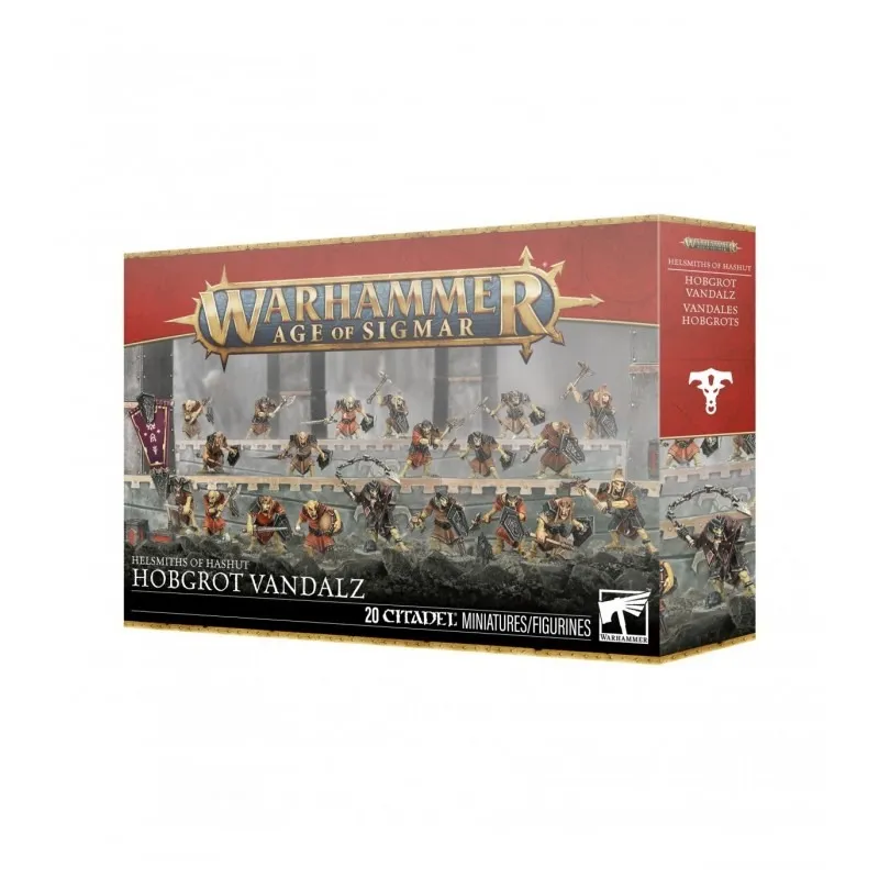 Los HOBGROTZ VÁNDALOZ forman una cuadrilla numerosa de infantería ligera pensada para saturar objetivos, trabar al rival y abrir huecos a las unidades principales. Su personalidad taimada se refleja en el equipo dispar: escudos pequeños, cuchillos, picas improvisadas y chatarra de guerra. Pese a su perfil modesto, aportan presencia en mesa, pantallas de protección y presión constante, lo que encaja con los planes de los Herreros Infernales de Hashut para desgastar al enemigo antes del golpe decisivo.