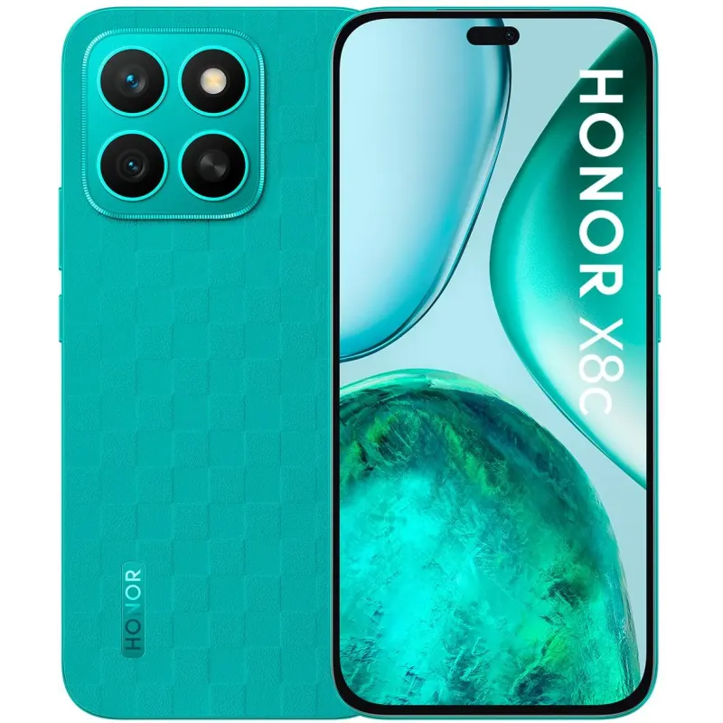 Smartphone Honor X8c con pantalla AMOLED de 6.7" cámara de 108 MP 8 GB RAM 256 GB carga rápida SuperCharge y diseño elegante Marrs Green.