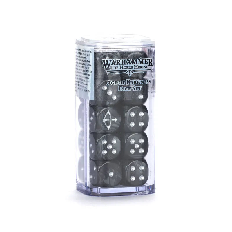 Horus Heresy: Age of Darkness Dice Set: Asegúrate de tener todos los dados que necesitas para tus partidas con el Horus Heresy: Age of Darkness Dice Set. Este set incluye 20 dados fabricados en un elegante color negro nacarado con marcas en tinta plateada.