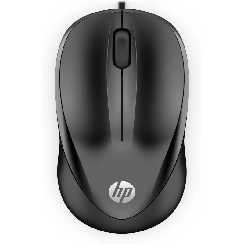 Ratón con cable HP 1000 Negro, con resolución de 1200 DPI y longitud de cable 1.5 m, diseño ambidextro y conexión USB tipo A para uso universal