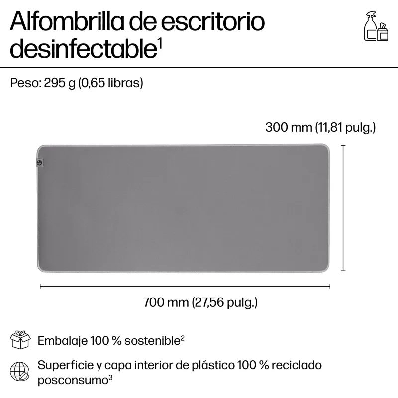 HP 200 Gris Alfombrilla de Escritorio Desinfectable, Base Antideslizante, Resistente a Salpicaduras