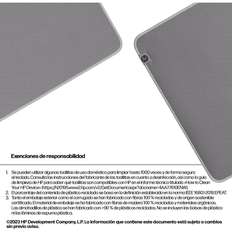 La Alfombrilla GamingHP 200 Gris Sanitizable  no solo destaca por su diseño y materiales, sino también por la confianza que ofrece al consumidor. Incluye una tarjeta de garantía que respalda su calidad y durabilidad, así como un enlace directo al Reglamento general de seguridad de los productos (GPSR), lo que garantiza su conformidad con las normativas vigentes. La elección de material reciclado rPET no solo responde a criterios ecológicos, sino que también asegura una textura uniforme y resistente. Por su parte, la base antiderrapante proporciona estabilidad adicional, haciendo que cada movimiento del ratón sea preciso y controlado. Esta combinación de calidad certificada, sostenibilidad y funcionalidad convierte a esta alfombrilla en una opción fiable y duradera para cualquier tipo de usuario, desde profesionales hasta gamers exigentes.