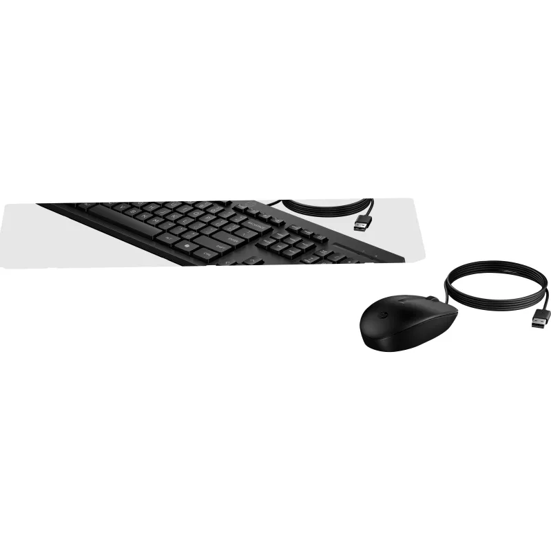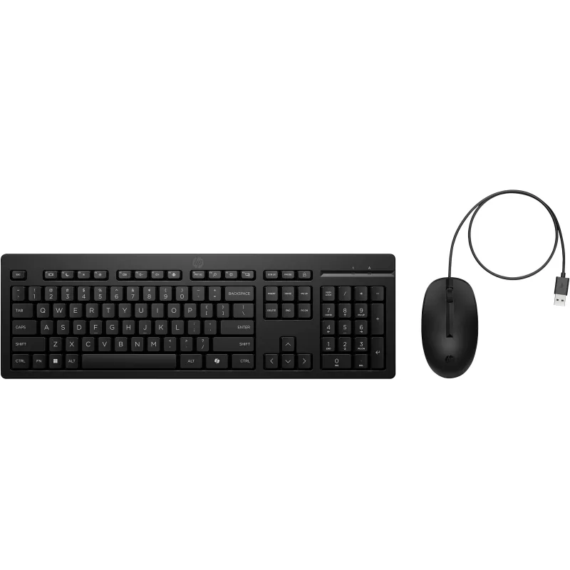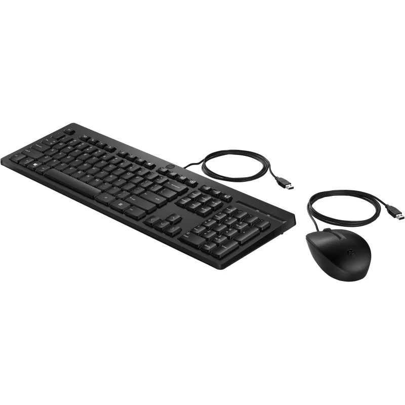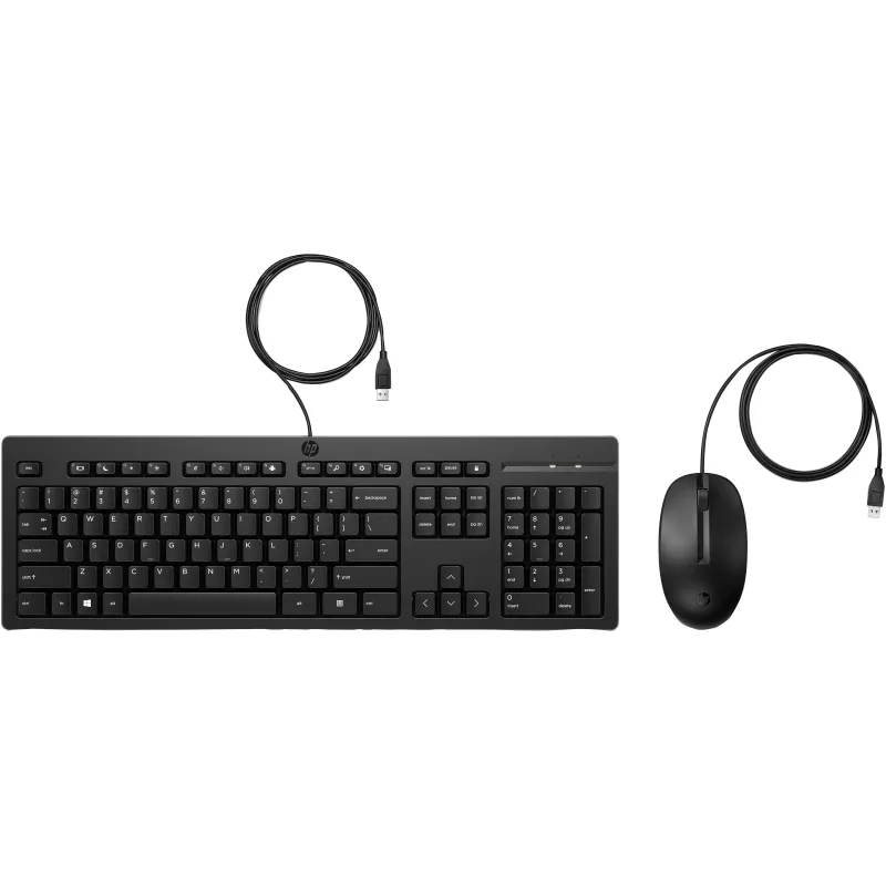 Teclado HP Combo de y ratón con cable 225, con resolución de movimiento 1200 DPI, formato del teclado completo 100%, conexión USB y diseño negro