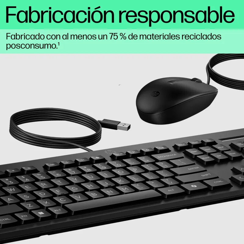 HP 225 Negro Completo USB Alámbrico con Ratón Incluido y Resistente a Líquidos