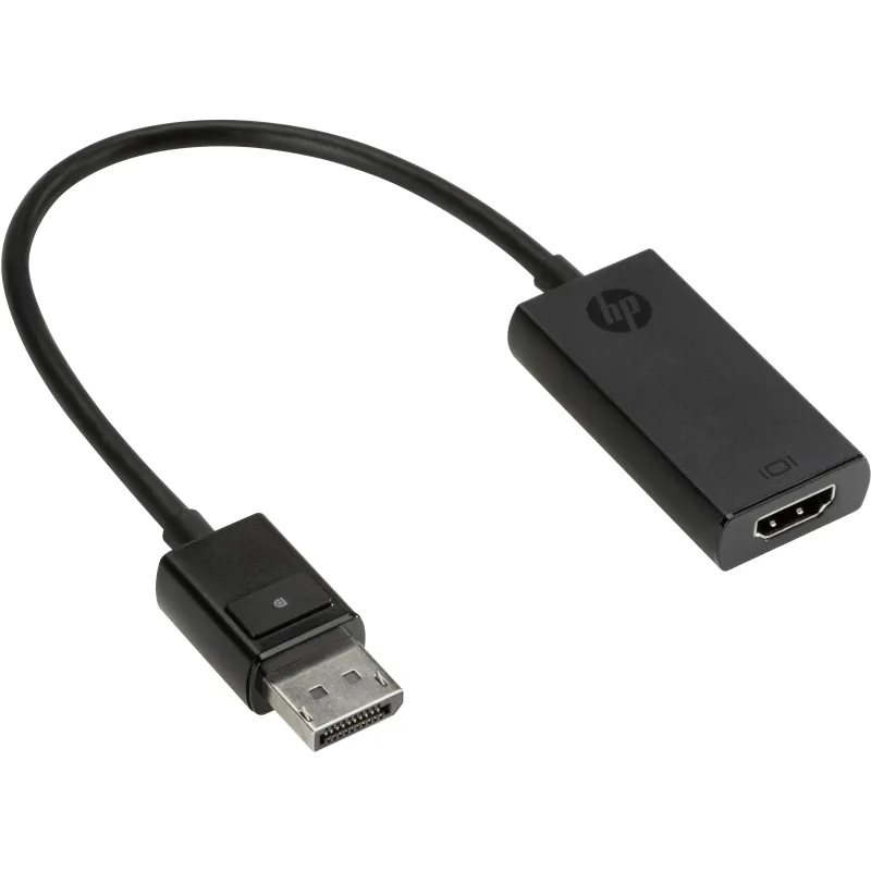 Adaptador USB HP 2JA63AA con conector DisplayPort macho y adaptador HDMI tipo A hembra, color negro, peso de 38 g y ancho de 300 mm